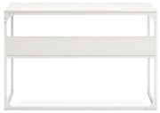 Bring your vision of a modern home workspace to life with this sleekly designed home office desk. Its linear construction and white finish keep things minimal. A small shelf along the back rounds out the versatile, striking desk.