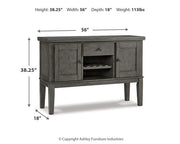 Cool and on-trend. This versatile server sports an antiqued gray color for a contemporary-yet-casual feel. The server features two cabinets, a smooth-gliding drawer and an open cubby with a wine rack, making it a breeze to clear away clutter and expand your serving space. Dining with friends and family has never been so stylish.